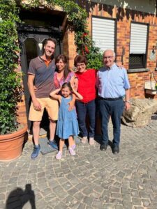 Senior Ernst bleibt dem Weingut – ebenso wie seine Ehefrau Monika – weiterhin engagiert verbunden. Seine legendären Fahrten mit dem Planwagen in die Weinberge sind nach wie vor fester Bestandteil der Schmitt’chen Kundenbetreuung.